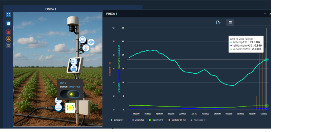 Nuestra solución convierte los datos en decisiones. Con sensores LoRa de bajo consumo medimos humedad del suelo, temperatura, clima y calidad del aire, permitiendo al agricultor optimizar cada parcela.